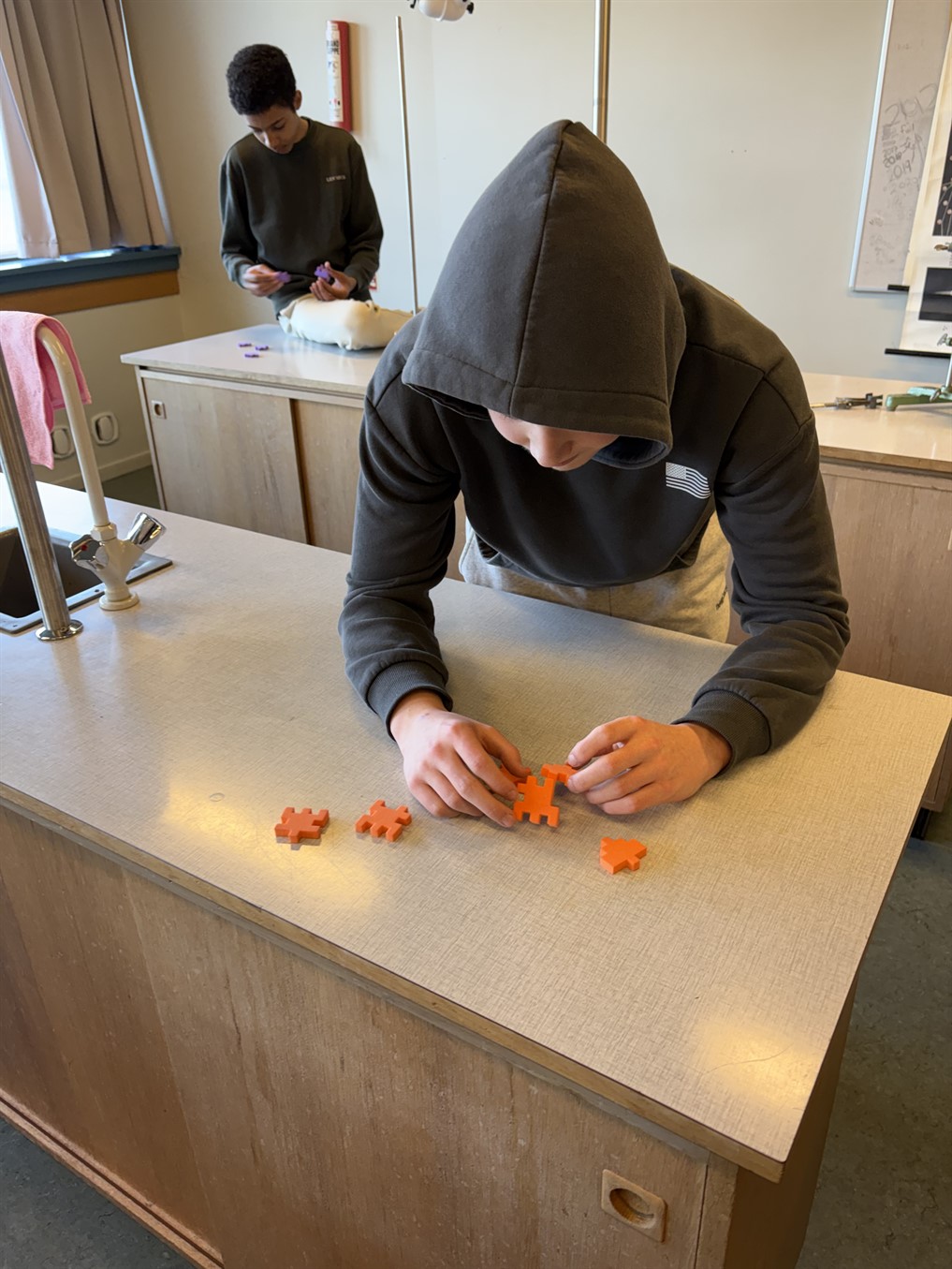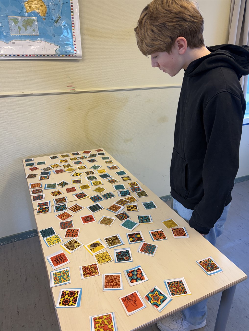 - Eitt slag av minnisspæli. Úti í gongini lógu nógv ymisk kort. Ein næmingur í senn slapp at síggja eitt kort, og so skuldi viðkomandi royna at finna eitt eins kort inni í skúlastovuni. Hendan uppgávan var kanska eitt sindur trupulari, enn hon ljóðar.